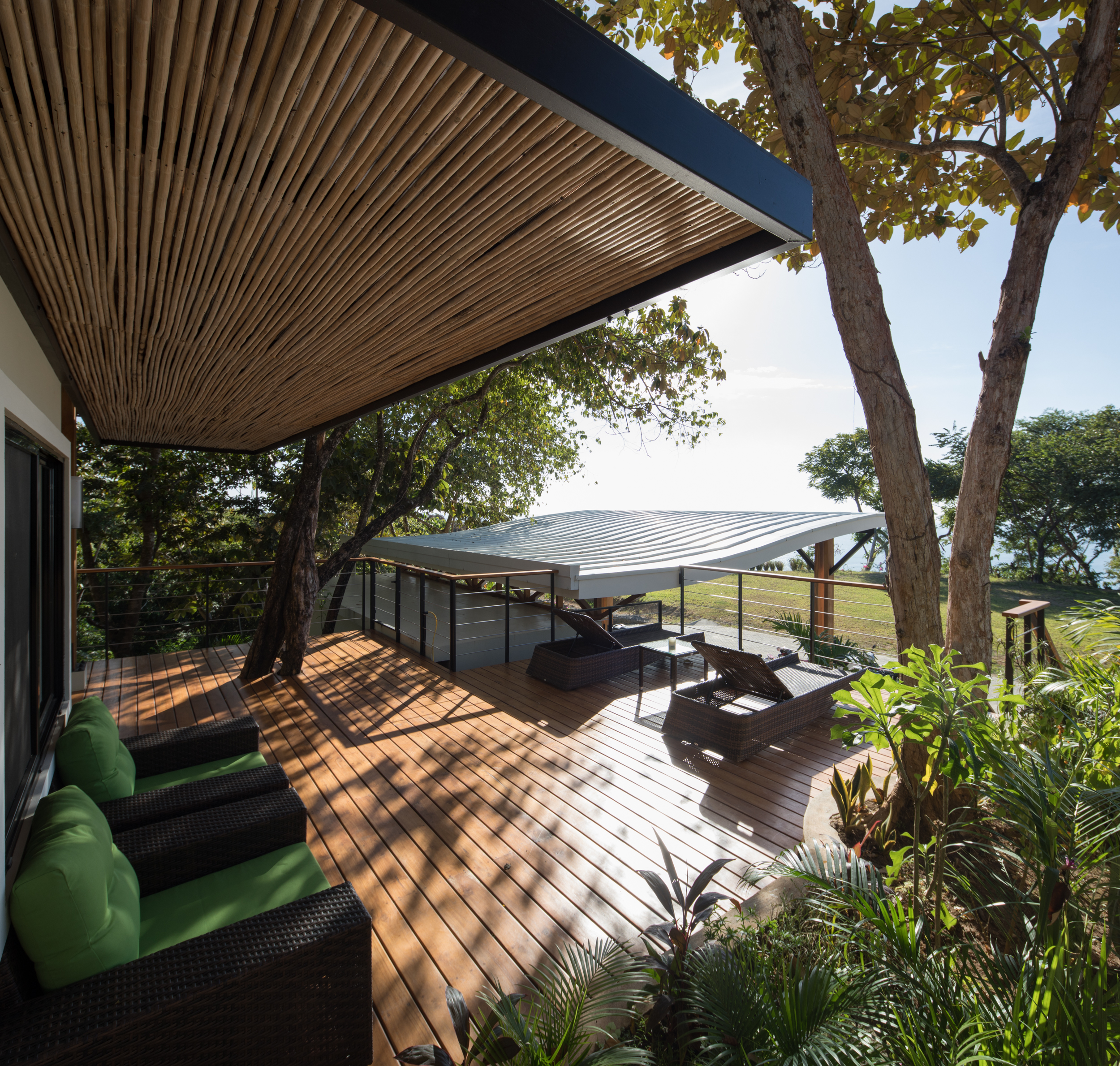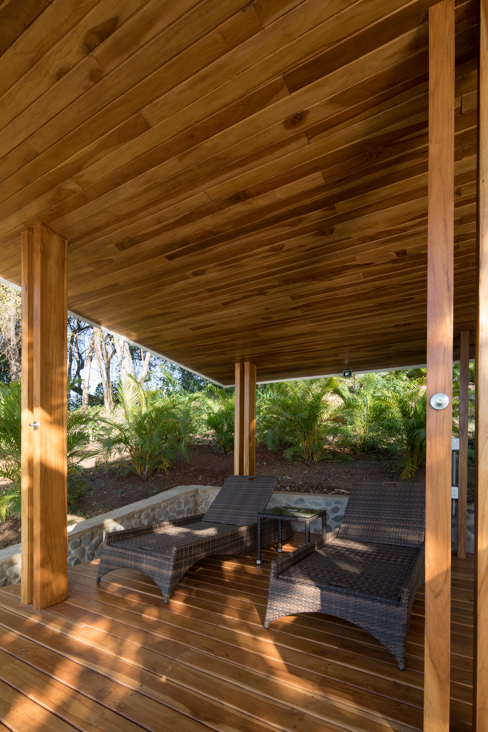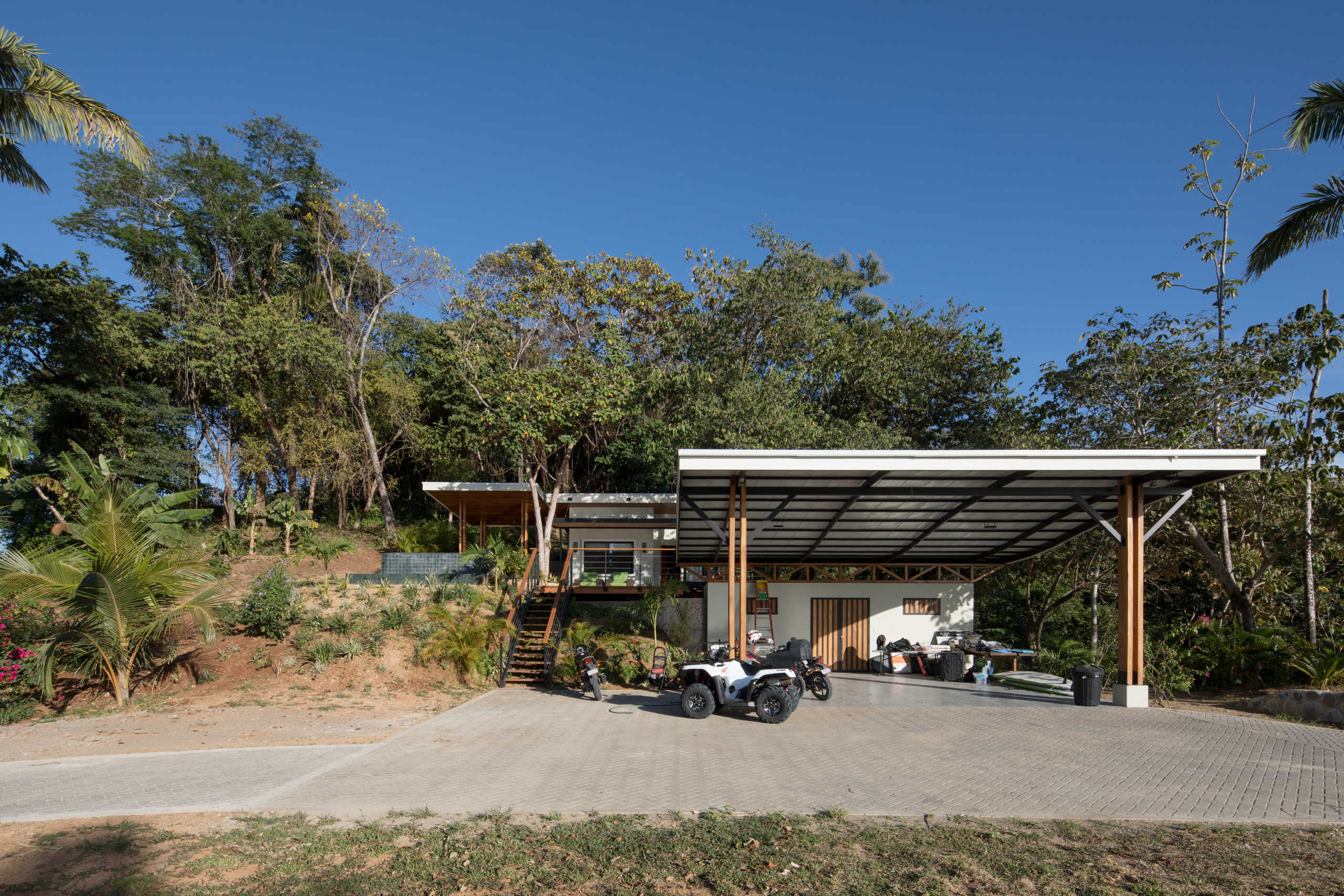 This guest house is designed as a quiet retreat on the edge of the tropical dry forest. Raised above a discreet garage, the structure opens out into a spacious wooden deck and a serene pool that appear to float among the trees. Surrounded by native vegetation, the space offers privacy, immersion, and open views of the landscape.