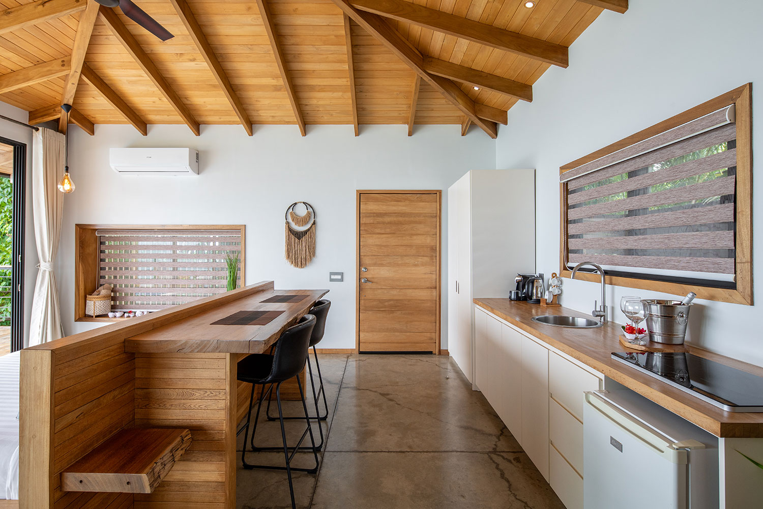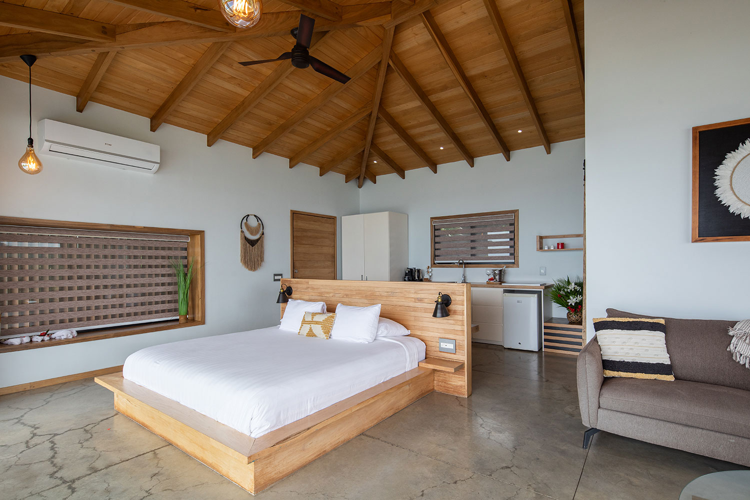 The owners did the landscaping themselves, using native plants, so the rooms and common areas are surrounded by lush vegetation. Staying at this boutique hotel is a truly experience for the soul, where peace and luxury blend to create an unforgettable experience. This is one of the villas in this boutique hotel, which features a breath-taking view of the cost line and surrounding mountains. It has its own kitchenette and private pool, as well as plenty of space for relaxing while looking at the sunset.